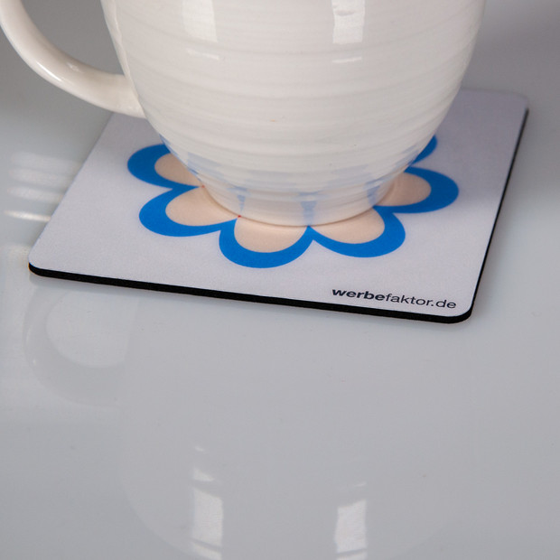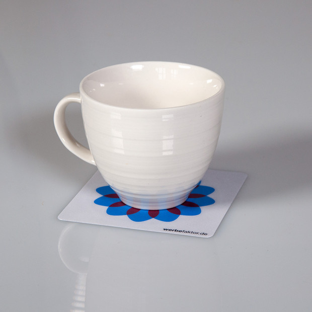 Auf jedem Schreibtisch steht eine Tasse und unter jede Tasse gehört ein Untersetzer! Wir drucken ihre Idee auf einen rutschfesten Untersetzer für Gläser und Tassen. Die Untersetzer werden auf Hart-PVC-Folie gedruckt und entweder mit Anti-Rutsch-Lack oder mit Zellkautschuk ausgerüstet.