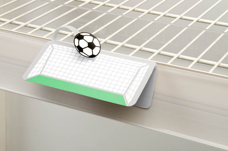 Dieser Stopper in 3D für die Scannerschiene ist ein kleines Beispiel wie Sie mit einem einfachen Artikel Ihren Verkaufspunkt aussergewöhnlich machen, für Aufmerksamkeit sorgen und Ihren Abverkauf fördern. Der Regalstopper wird flach geliefert und erst am PoS entfaltet und in die Scannerschiene gesteckt.